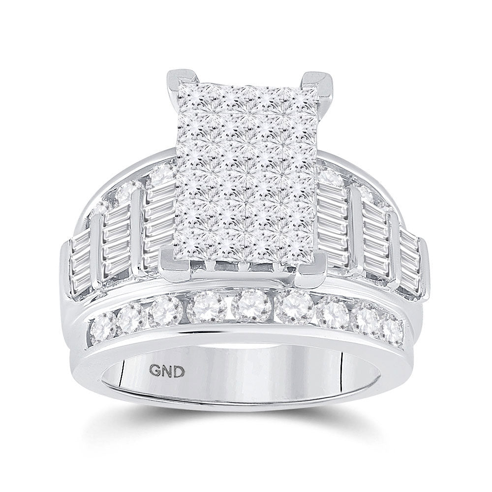 Keene Jewelers 14kt White Gold Princess Diamond Cluster Bridal Wedding Engagement Ring 3 Cttw Size 9