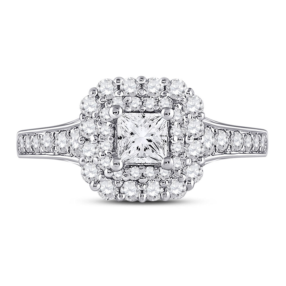 Keene Jewelers 14kt White Gold Princess Diamond Halo Bridal Wedding Engagement Ring 1-1/2 Cttw