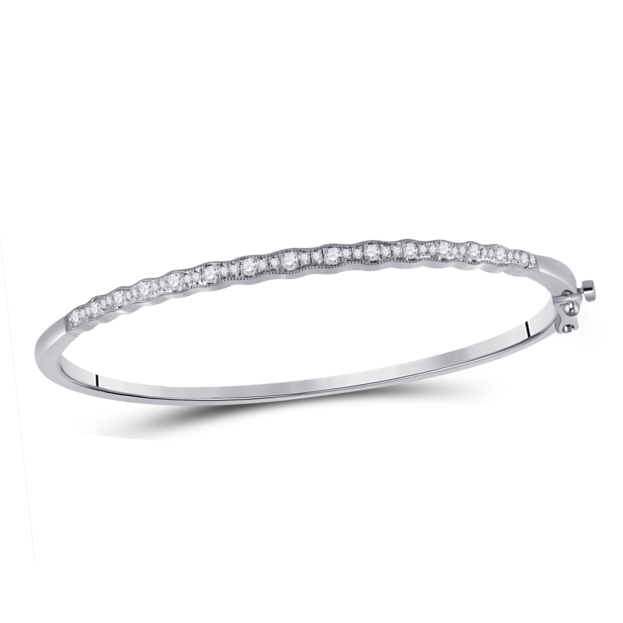 Keene Jewelers 10kt White Gold Womens Round Diamond Bangle Bracelet 1/2 Cttw