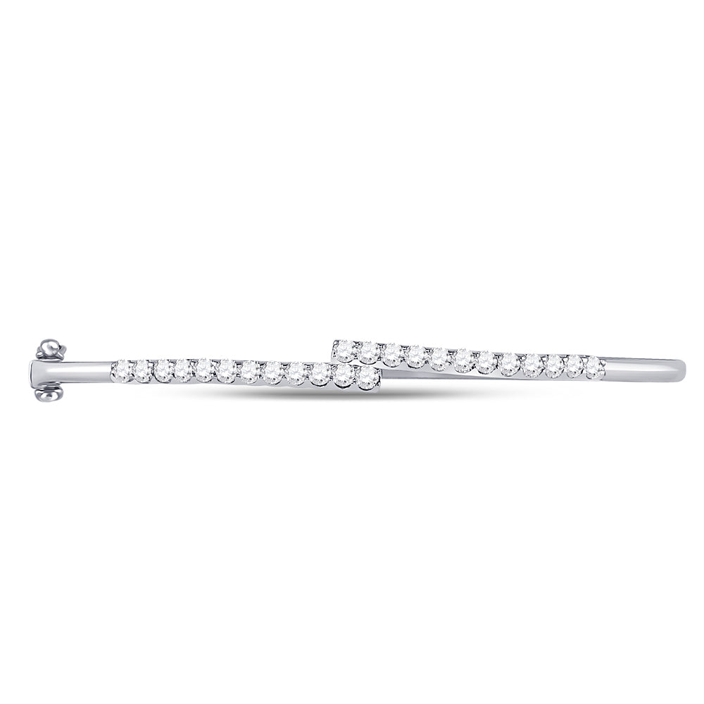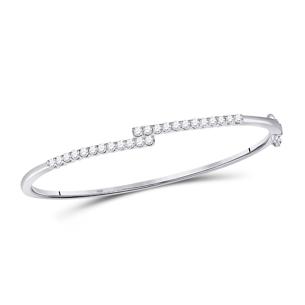 Keene Jewelers 14kt White Gold Womens Round Diamond Bypass Bangle Bracelet 1 Cttw