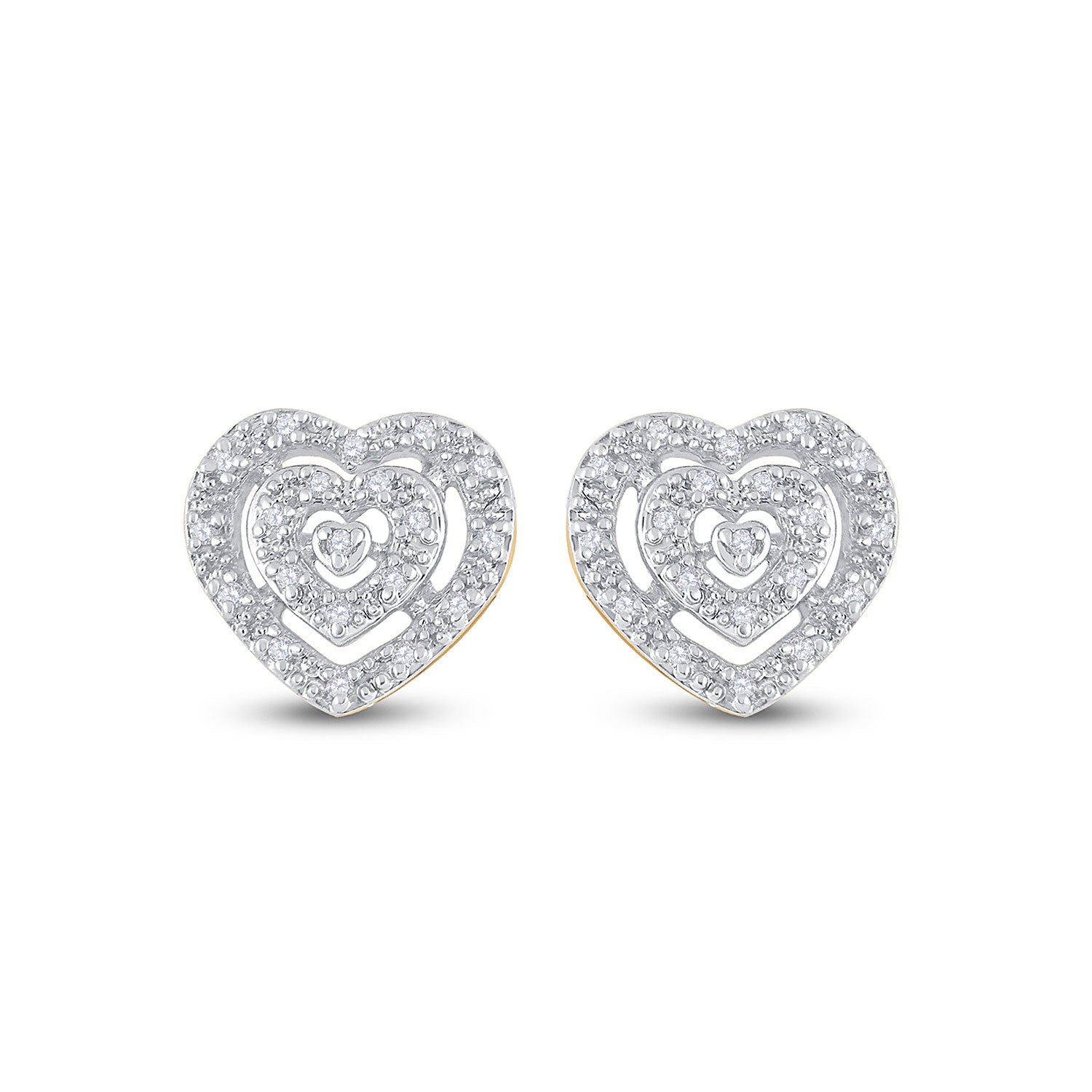 Keene Jewelers 10kt Yellow Gold Womens Round Diamond Heart Earrings 1/12 Cttw