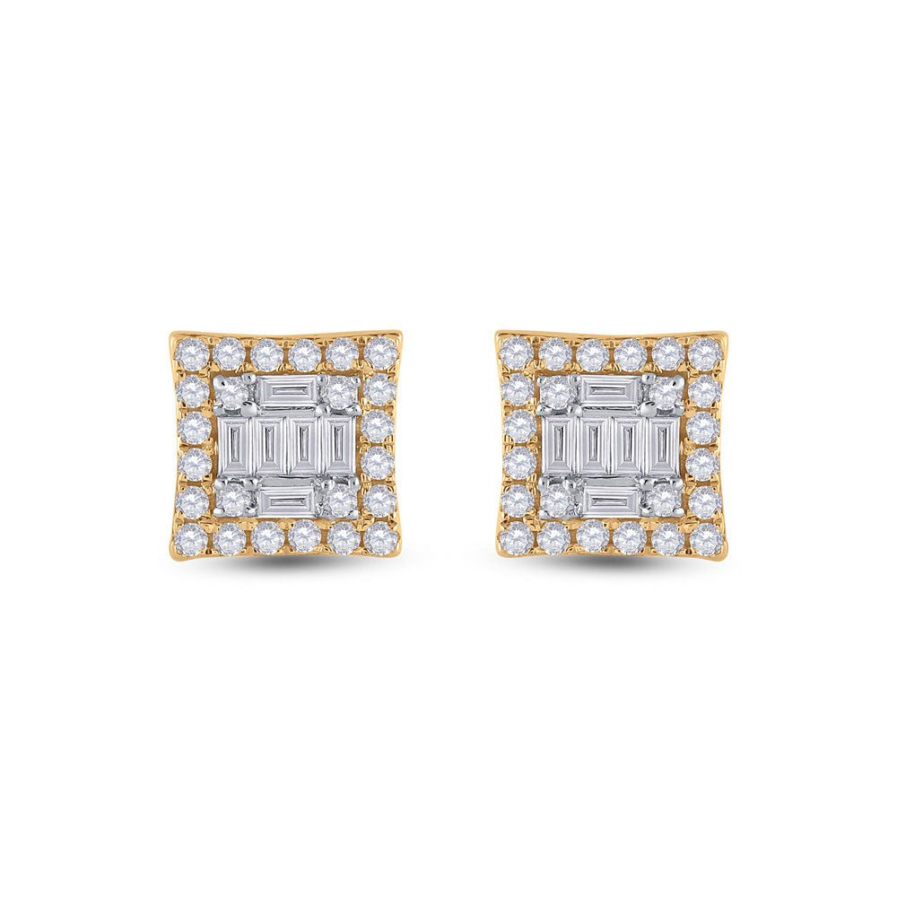 Keene Jewelers 14kt Yellow Gold Womens Baguette Diamond Square Earrings 1/2 Cttw
