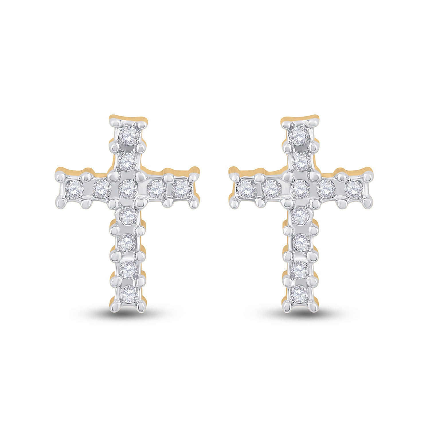 Keene Jewelers 14kt Yellow Gold Womens Round Diamond Cross Earrings 1/10 Cttw