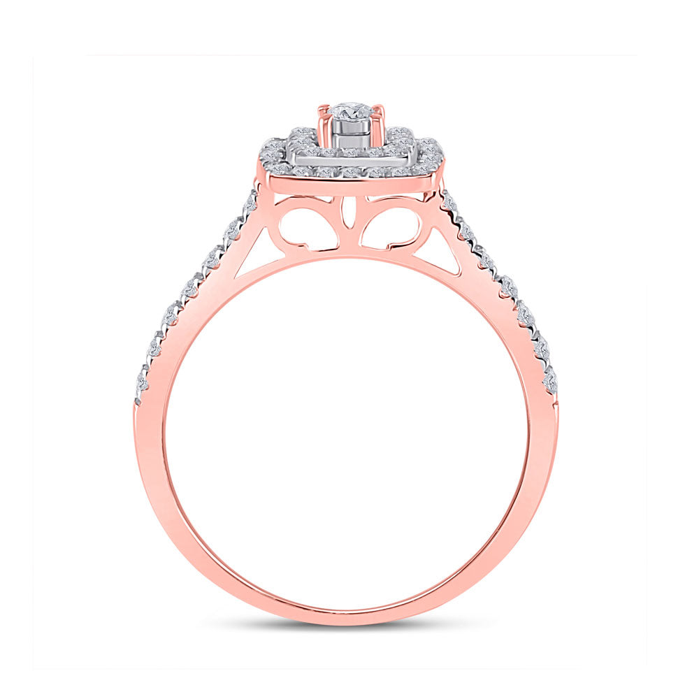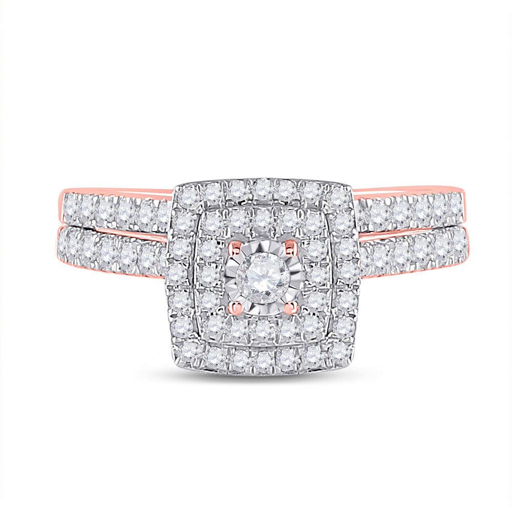 Keene Jewelers 10kt Rose Gold Round Diamond Halo Bridal Wedding Ring Band Set 1/2 Cttw