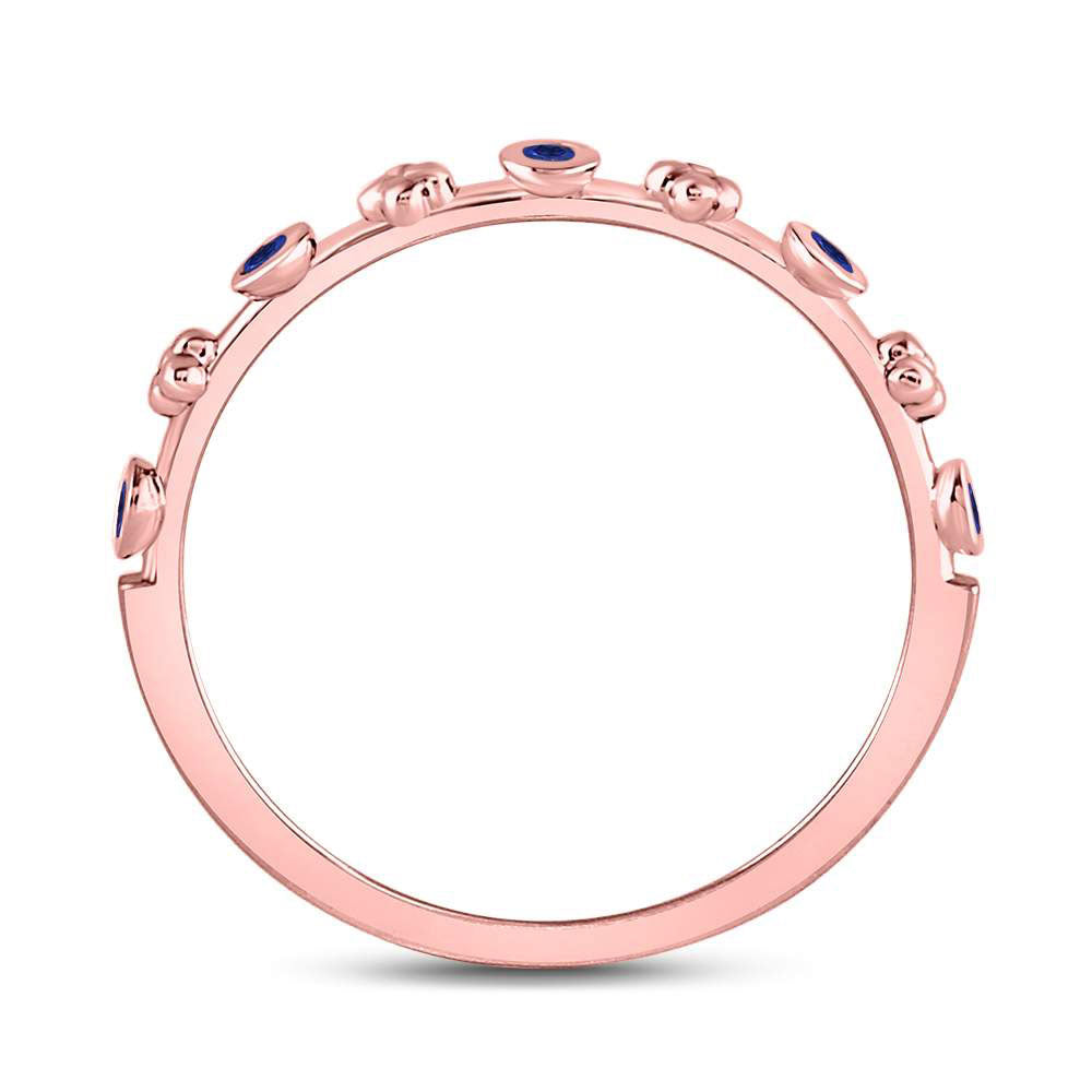 Keene Jewelers 10kt Rose Gold Womens Round Blue Sapphire Dot Flower Stackable Band Ring 1/12 Cttw