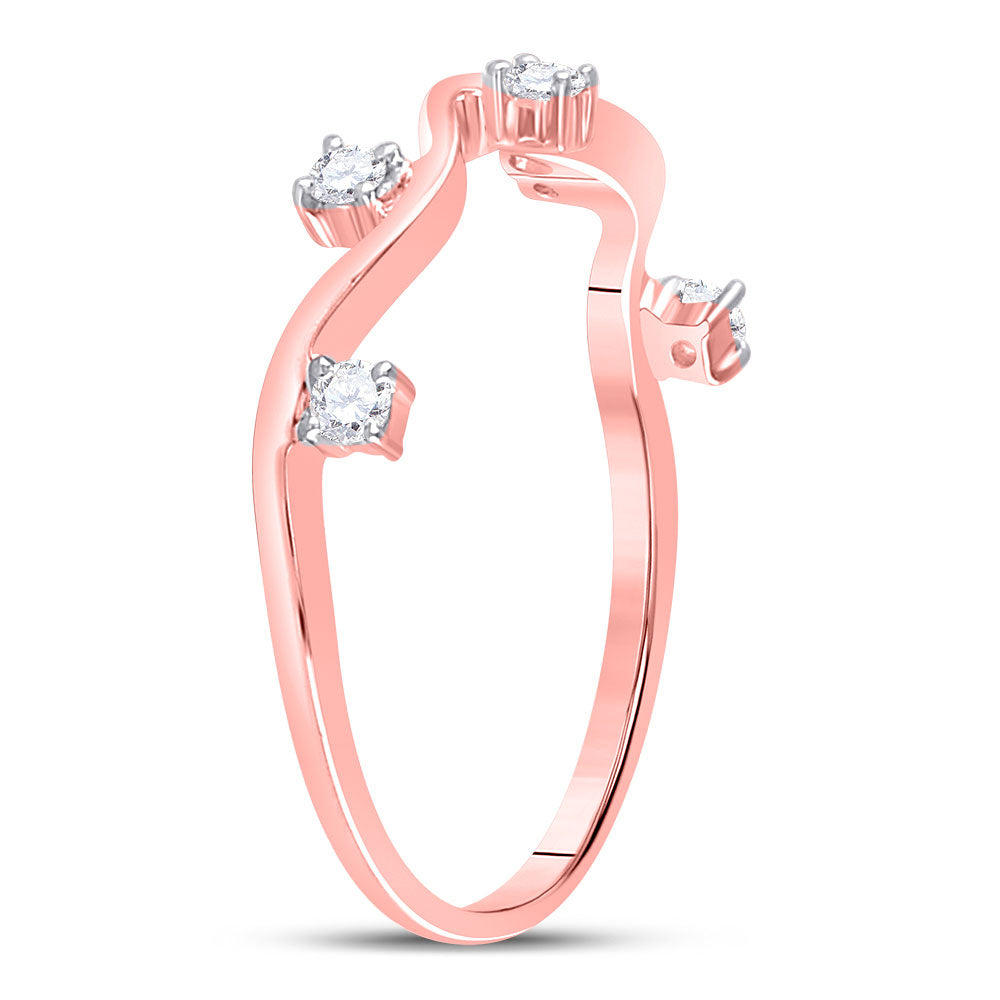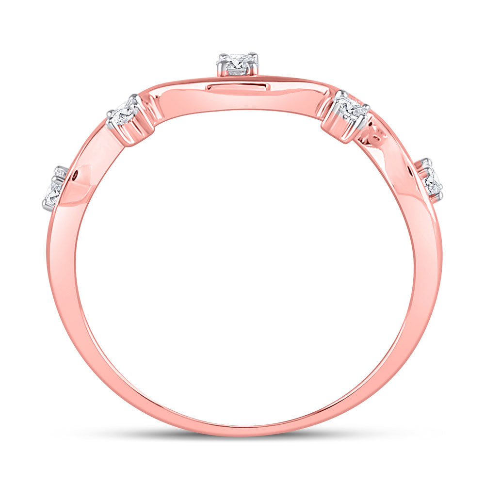 Keene Jewelers 10kt Rose Gold Womens Round Diamond Wave Stackable Band Ring 1/8 Cttw