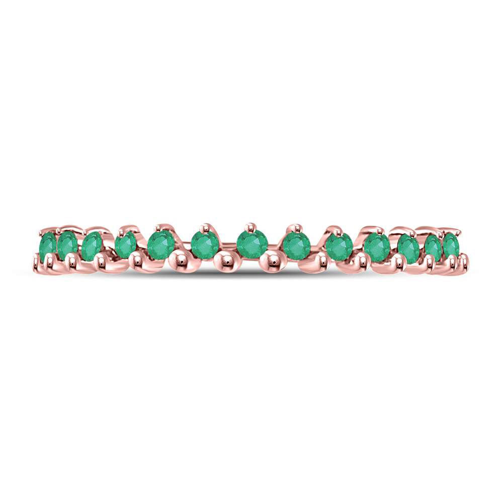 Keene Jewelers 10kt Rose Gold Womens Round Emerald Stackable Band Ring 1/8 Cttw