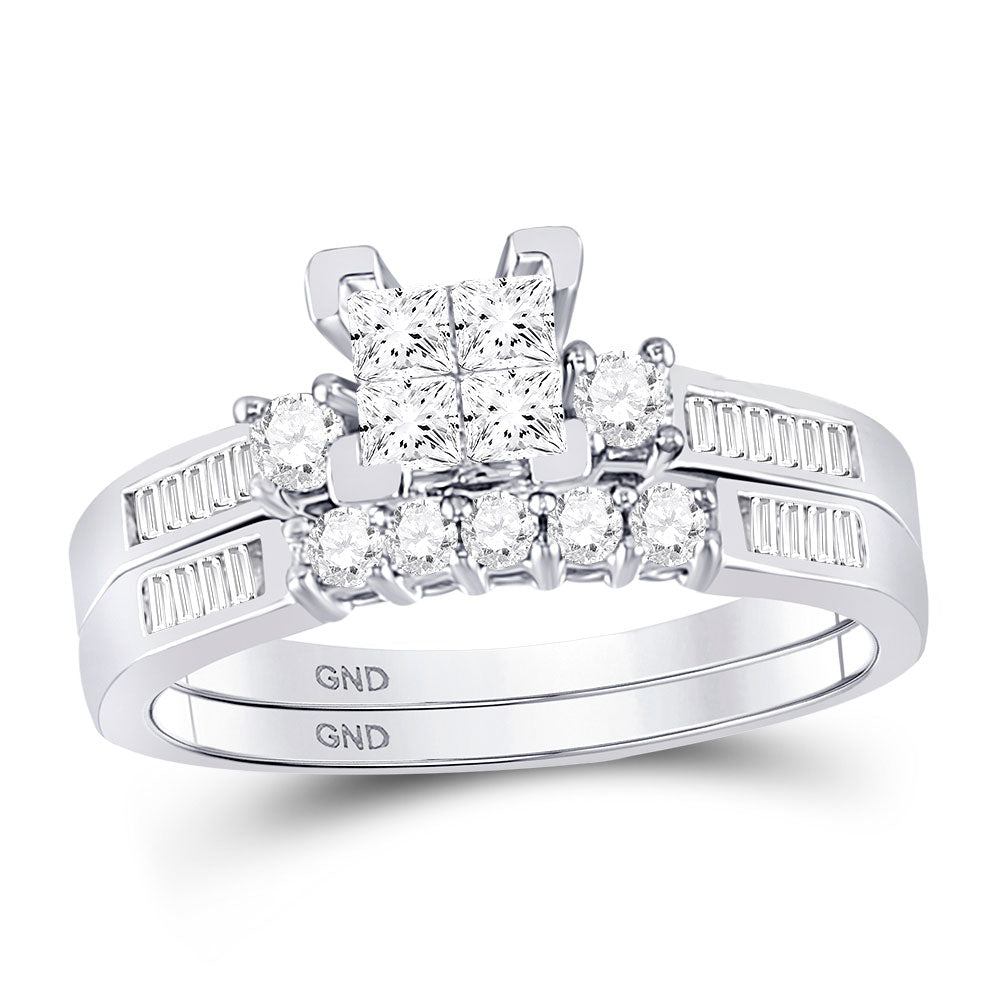 Keene Jewelers 10kt White Gold Princess Diamond Bridal Wedding Ring Band Set 1/2 Cttw - Size 6