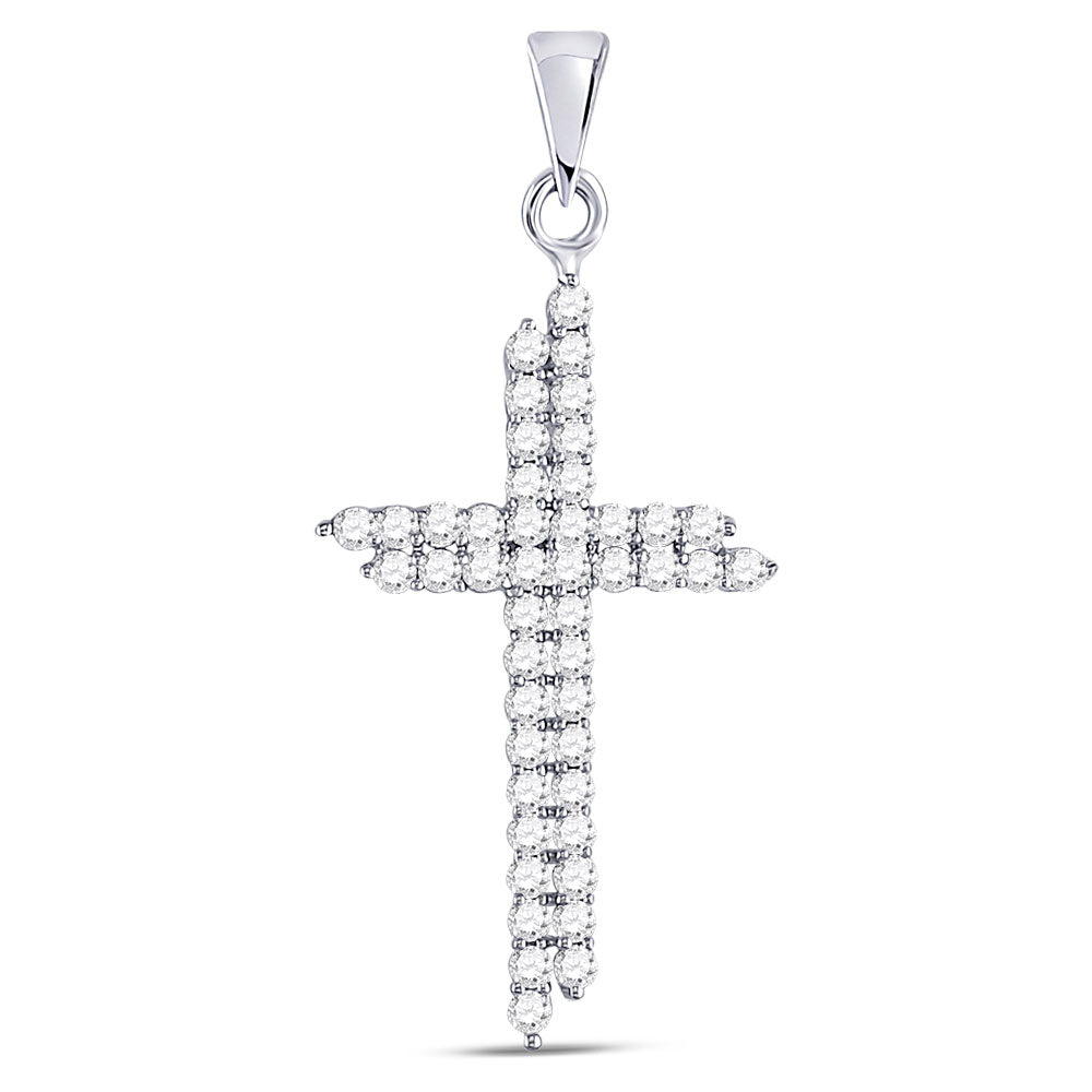 Keene Jewelers 10kt White Gold Womens Round Diamond Asymmetric Cross Pendant 1/2 Cttw