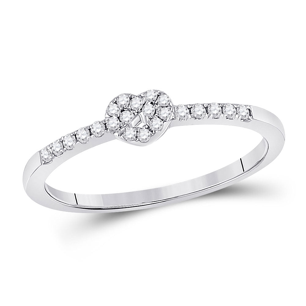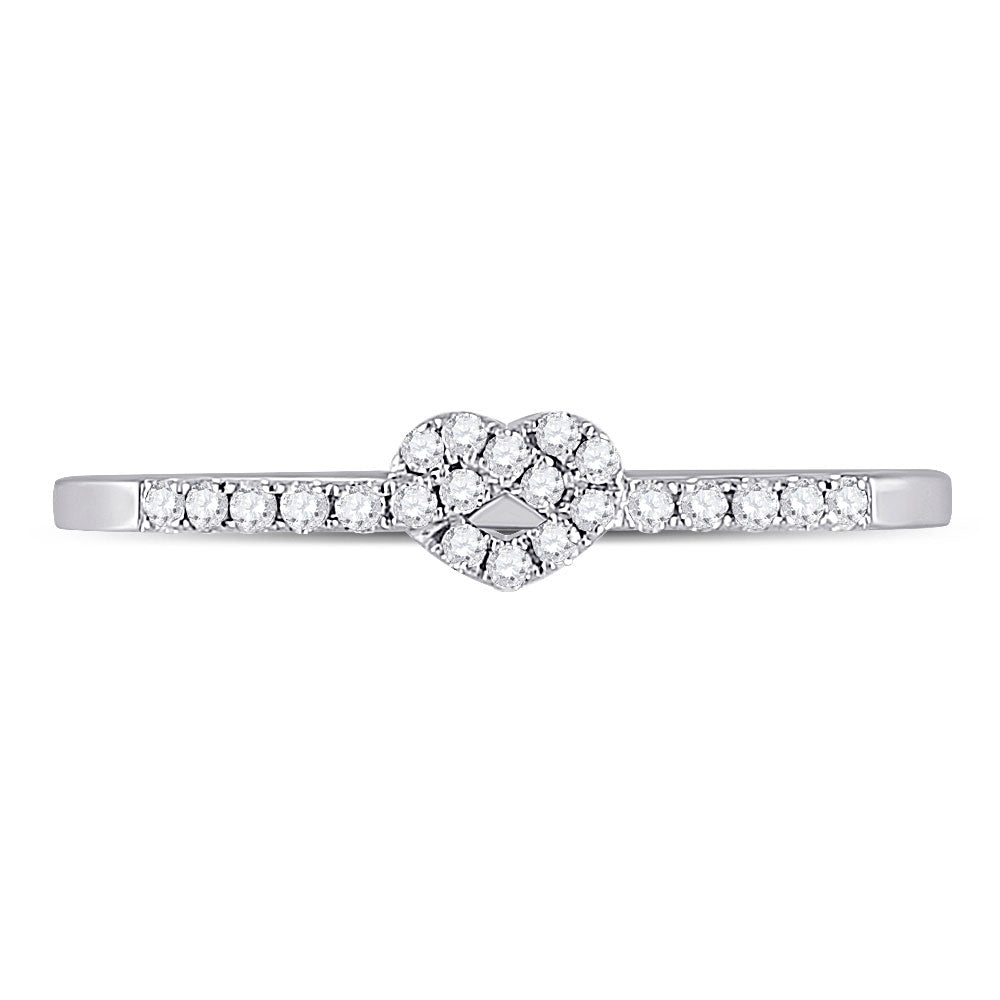 Keene Jewelers 10kt White Gold Womens Round Diamond Heart Stackable Band Ring 1/8 Cttw