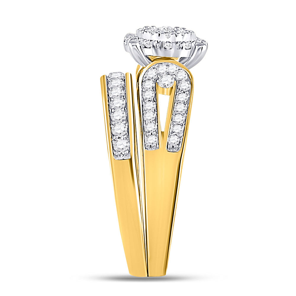 Keene Jewelers 10kt Yellow Gold His Hers Round Diamond Cluster Matching Wedding Set 1 Cttw