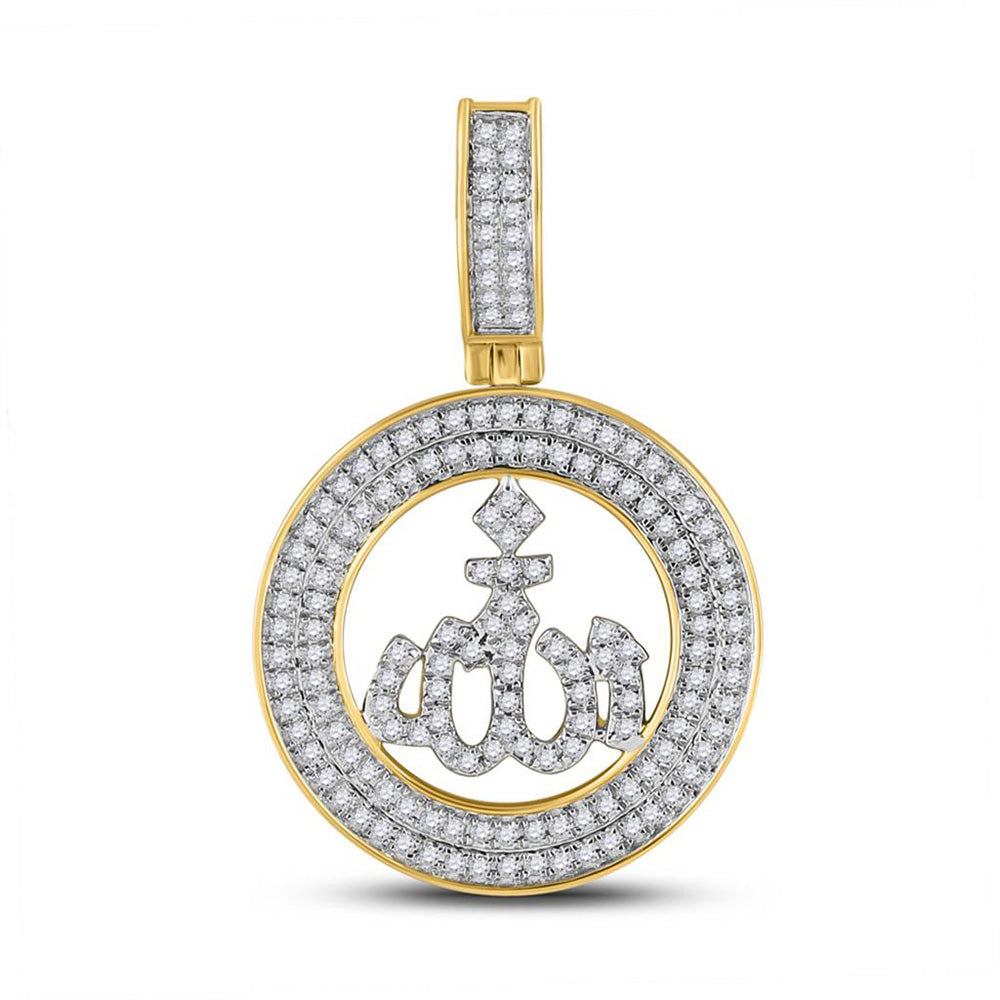 Keene Jewelers 10kt Yellow Gold Mens Round Diamond Allah Islam Charm Pendant 1/2 Cttw