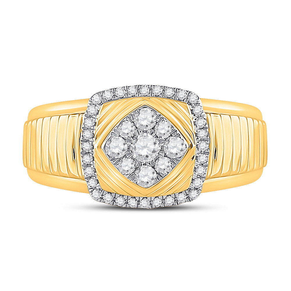Keene Jewelers 10kt Yellow Gold Mens Round Diamond Ribbed Square Cluster Ring 1/2 Cttw