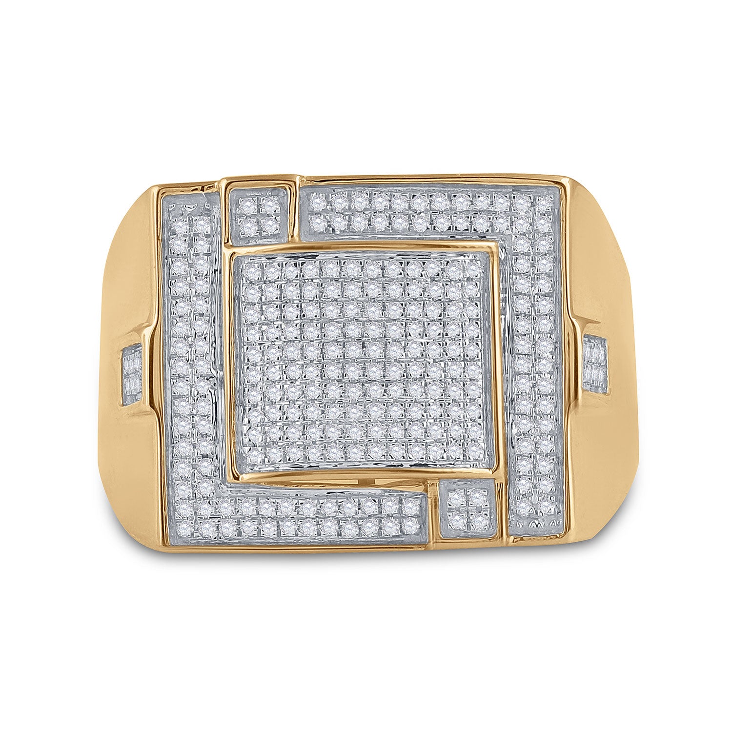 Keene Jewelers 10kt Yellow Gold Mens Round Diamond Square Cluster Ring 3/8 Cttw