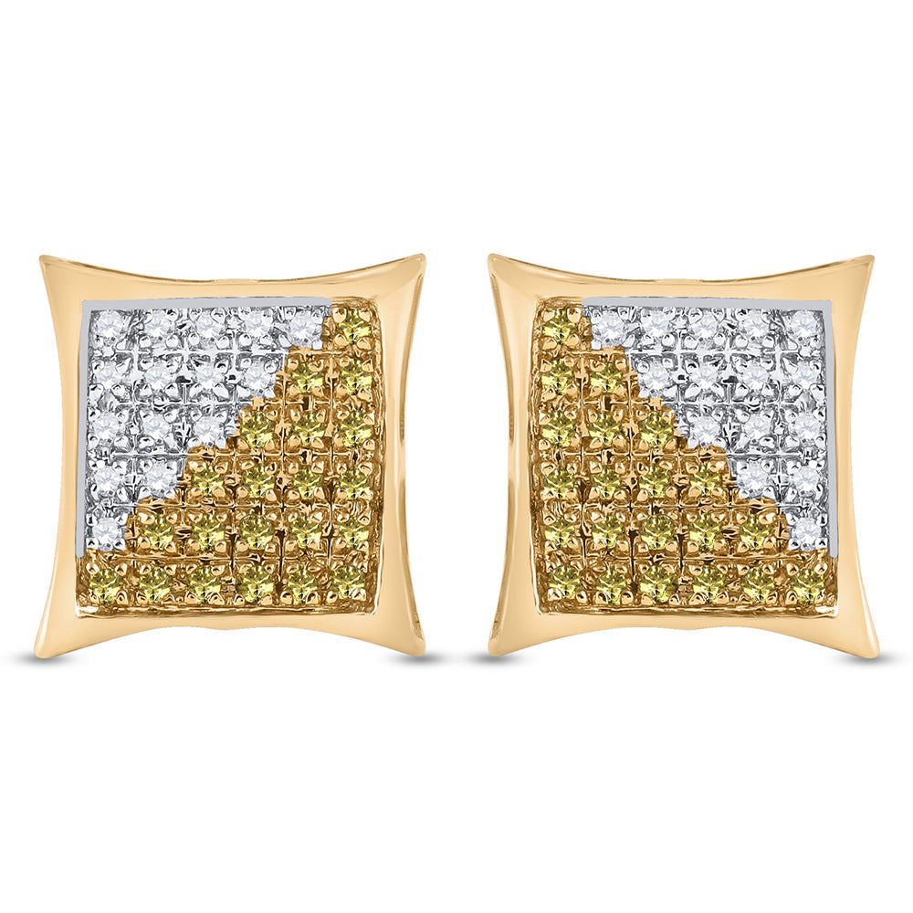 Keene Jewelers 10kt Yellow Gold Mens Round Yellow Color Enhanced Diamond Square Cluster Earrings 1/4 Cttw