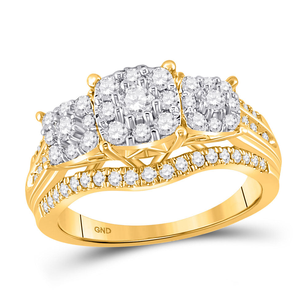 Keene Jewelers 10kt Yellow Gold Womens Round Diamond Cluster 3-stone Ring 1 Cttw