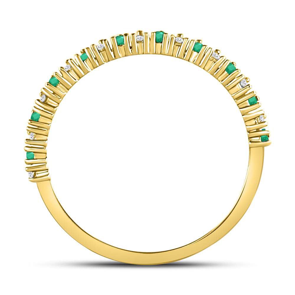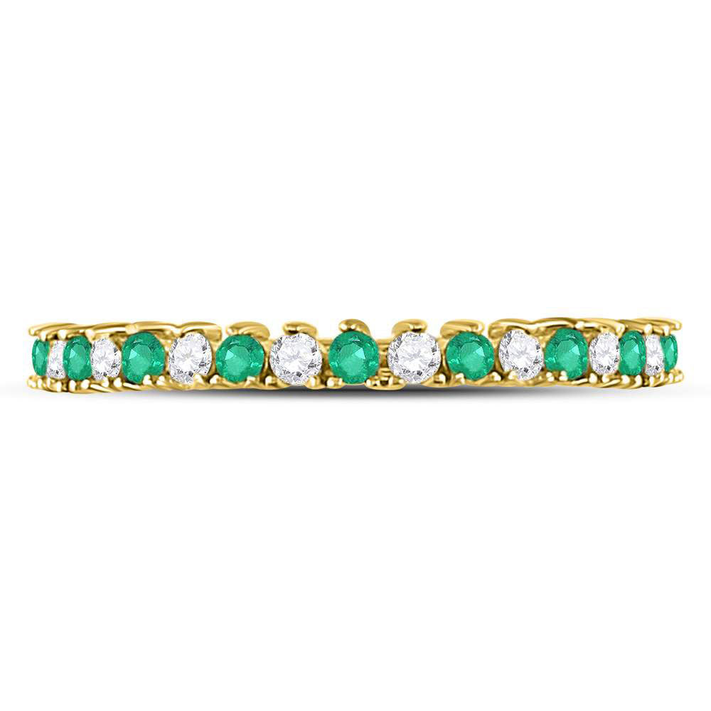 Keene Jewelers 10kt Yellow Gold Womens Round Emerald Diamond Stackable Band Ring 1/5 Cttw