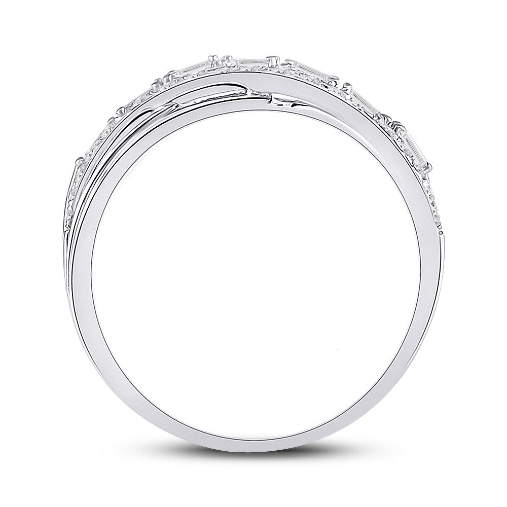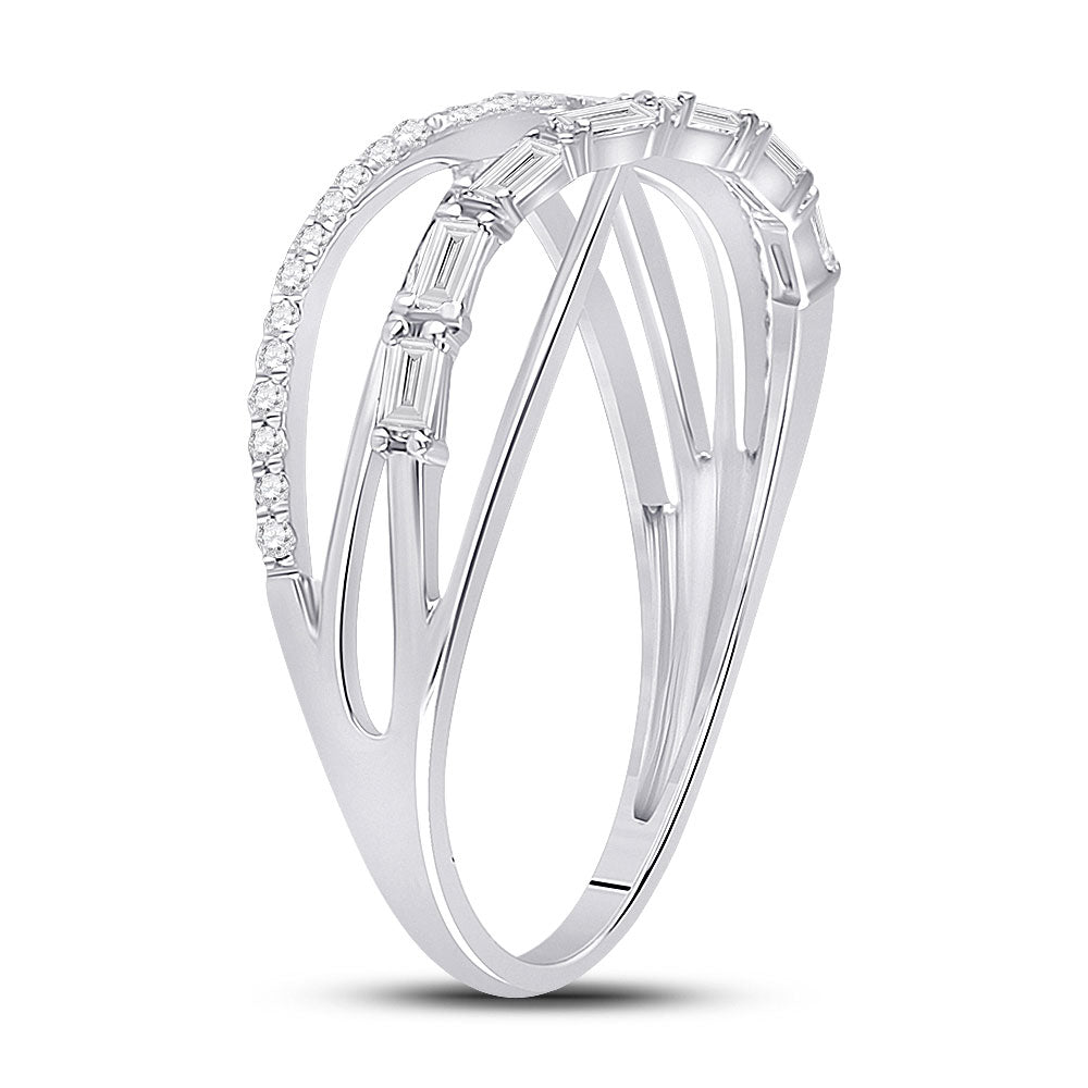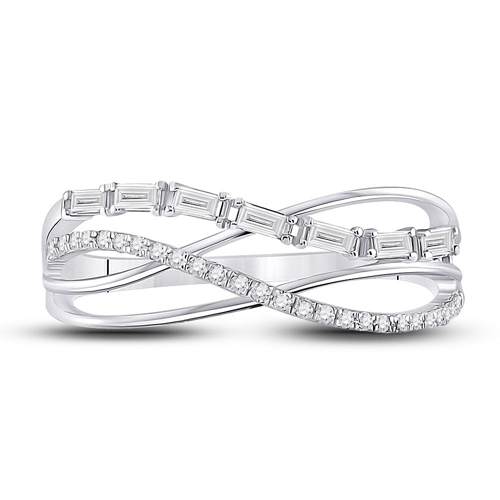 Keene Jewelers 14kt White Gold Womens Baguette Round Diamond Crossover Band Ring 1/4 Cttw
