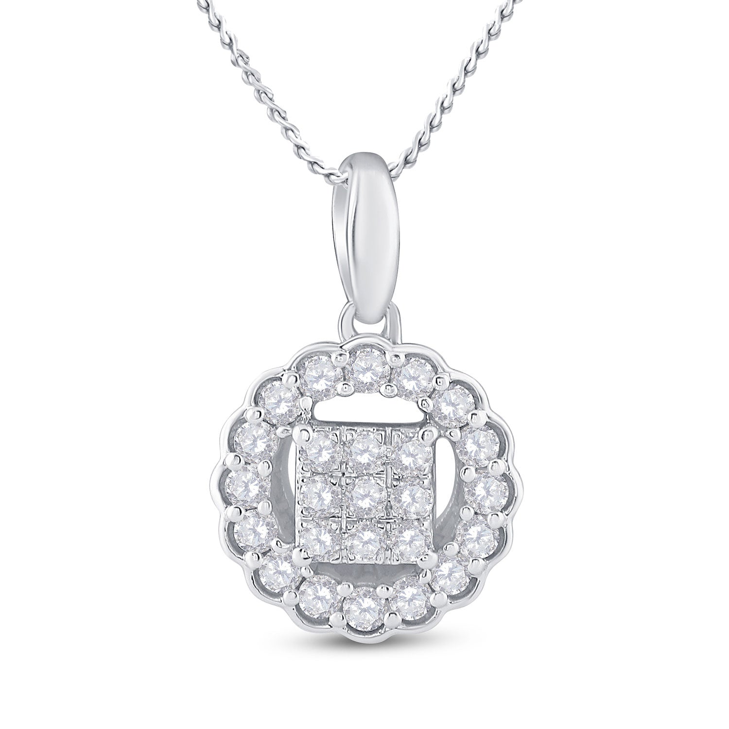 Keene Jewelers 14kt White Gold Womens Round Diamond Circle Pendant 1/4 Cttw