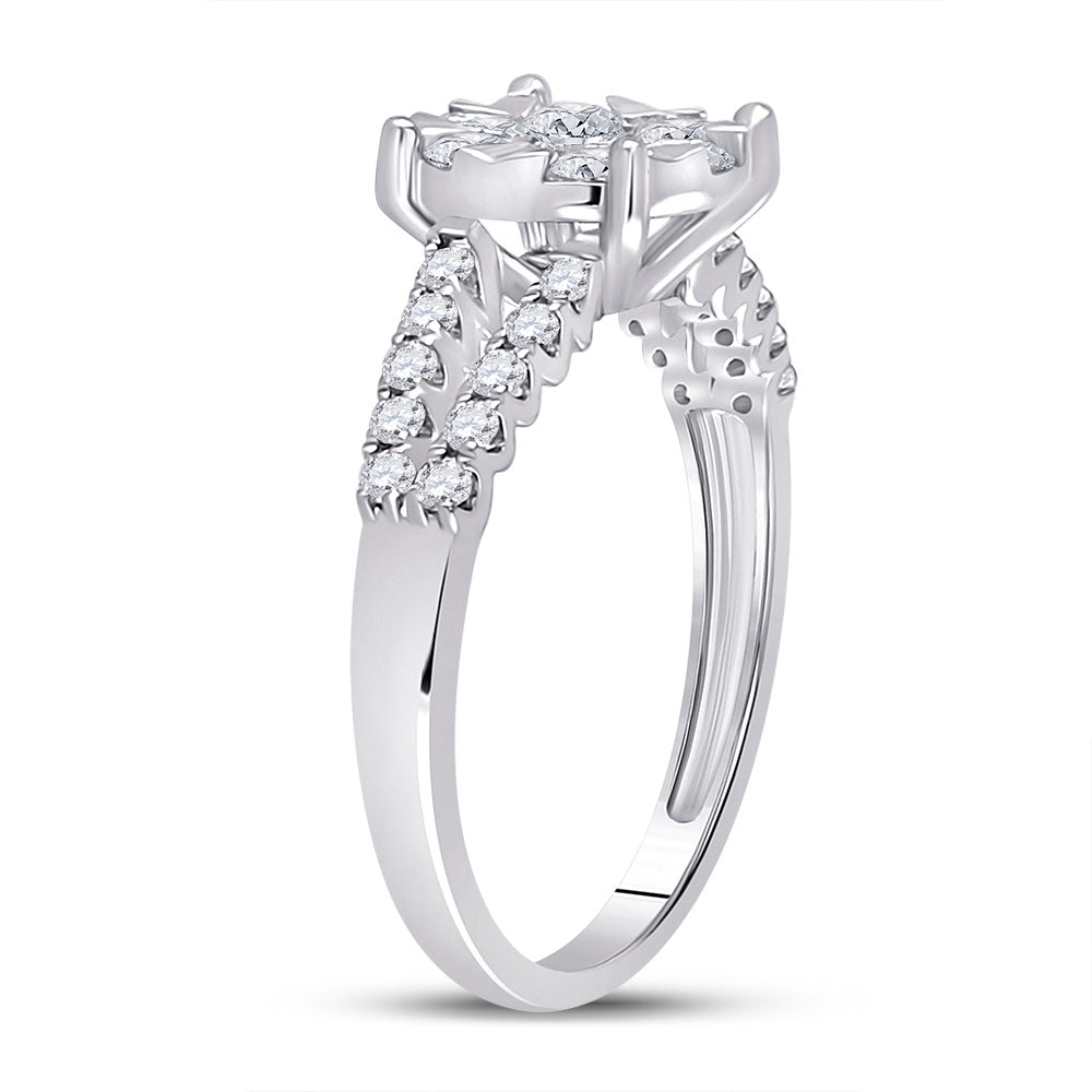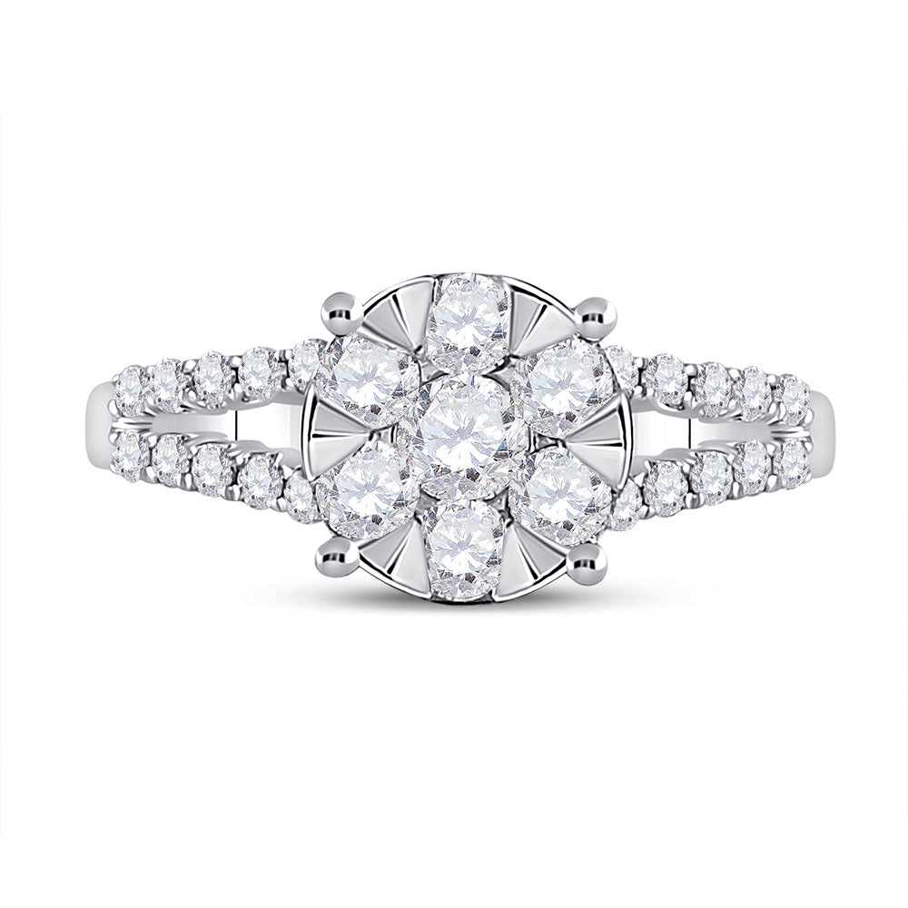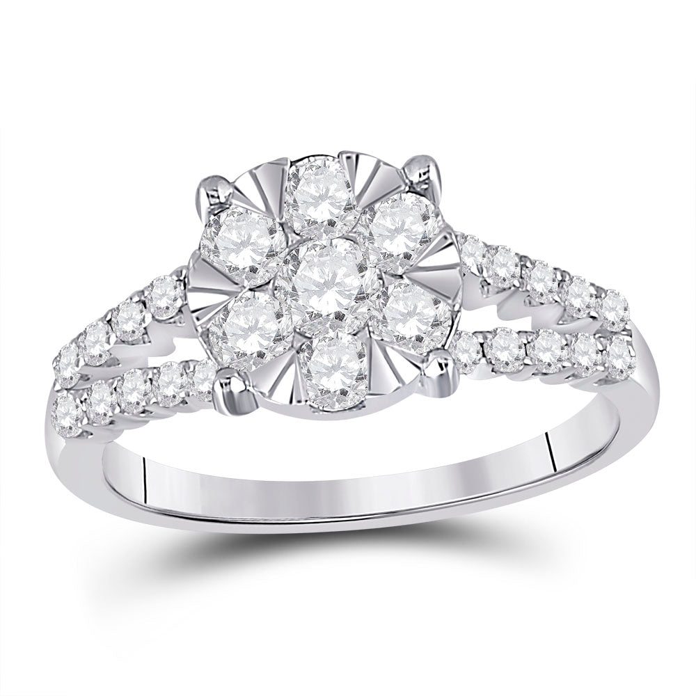 Keene Jewelers 14kt White Gold Womens Round Diamond Flower Cluster Ring 1 Cttw