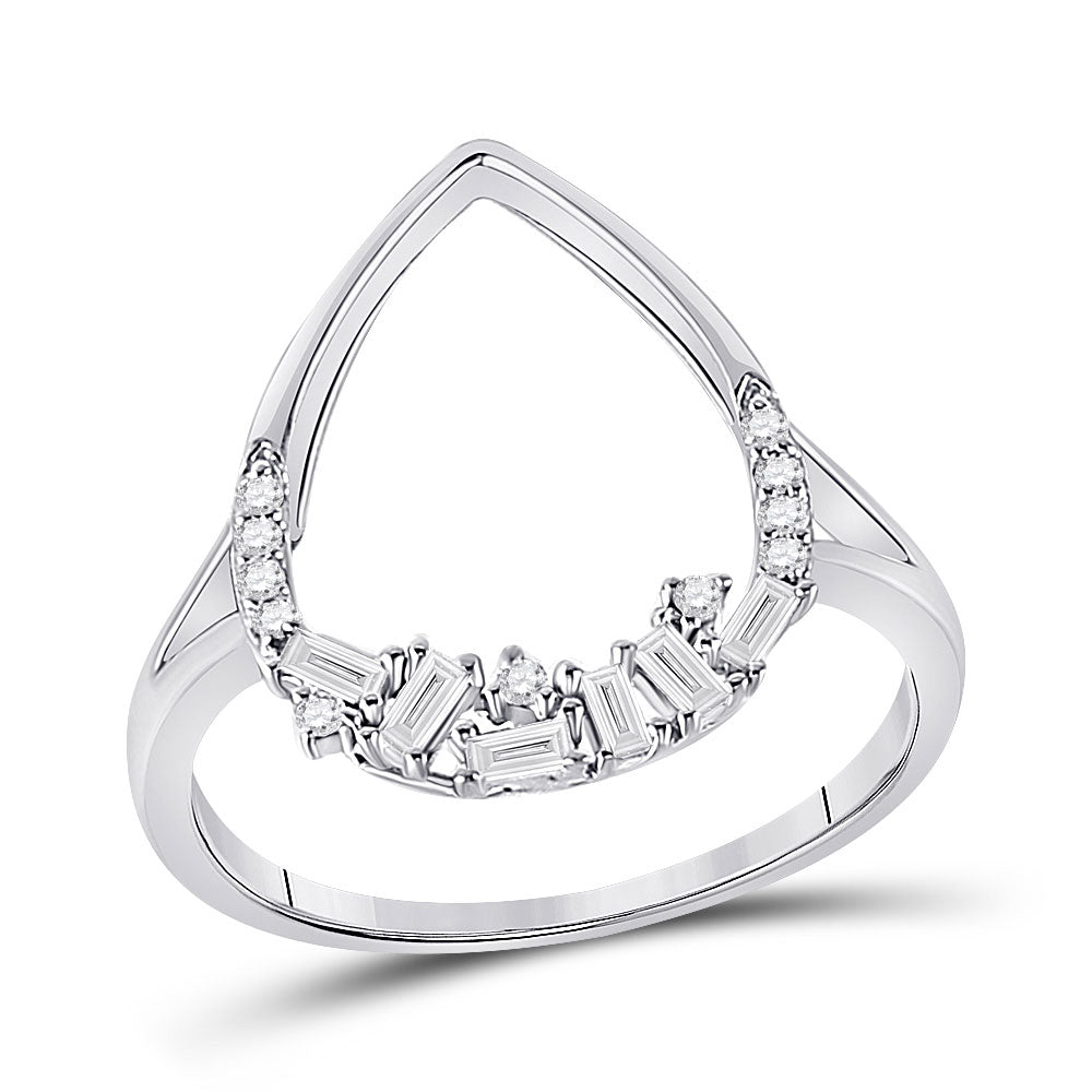 14kt White Gold Womens Round Diamond Teardrop Scattered Fashion Ring 1/5 Cttw