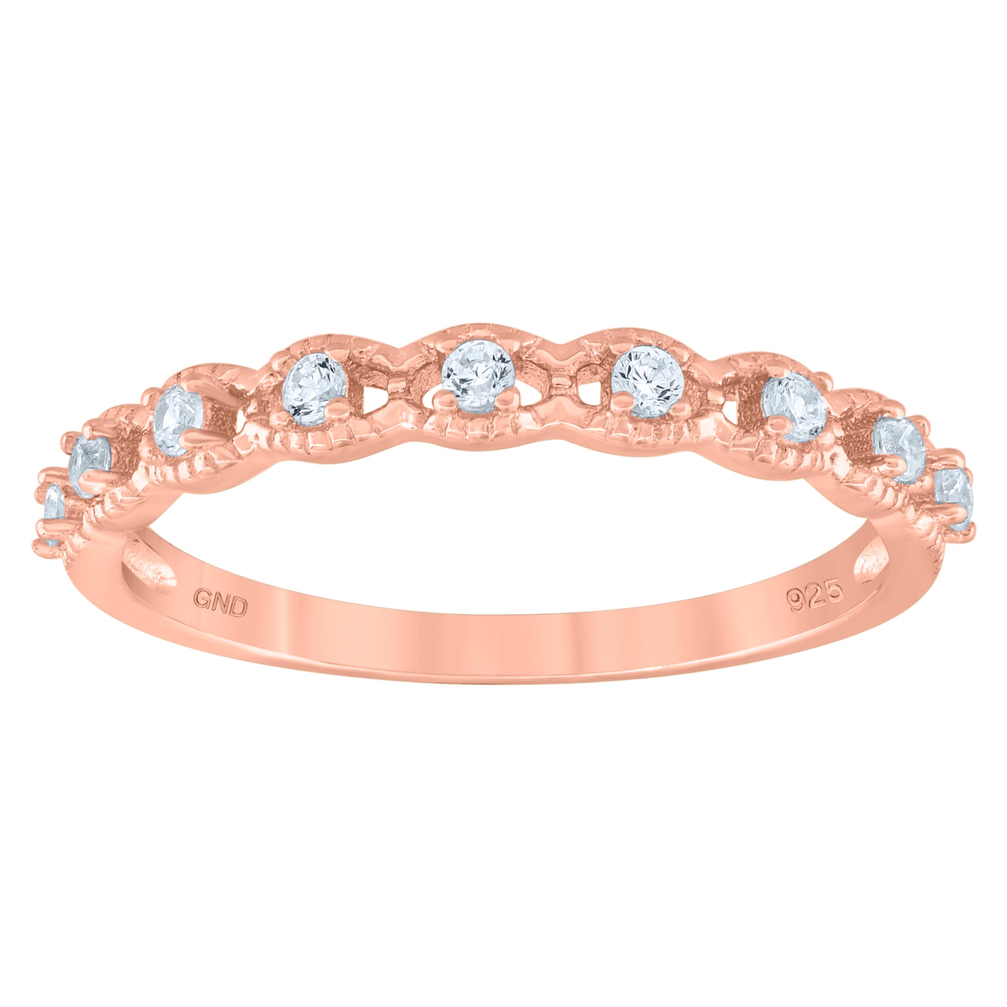Keene Jewelers 925 Sterling Silver Rose Womens Cubic Zirconia Semi-Eternity Wedding Band Ring Size 6