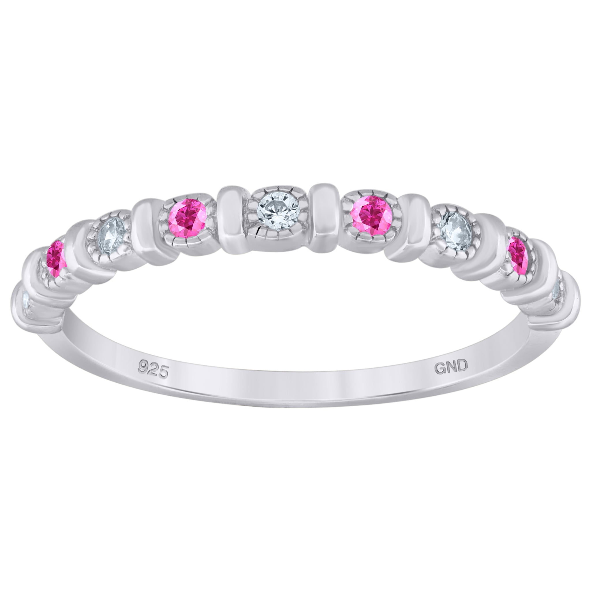 Keene Jewelers 925 Sterling Silver Womens Pink Cubic Zirconia Semi-Eternity Wedding Band Ring Size 6