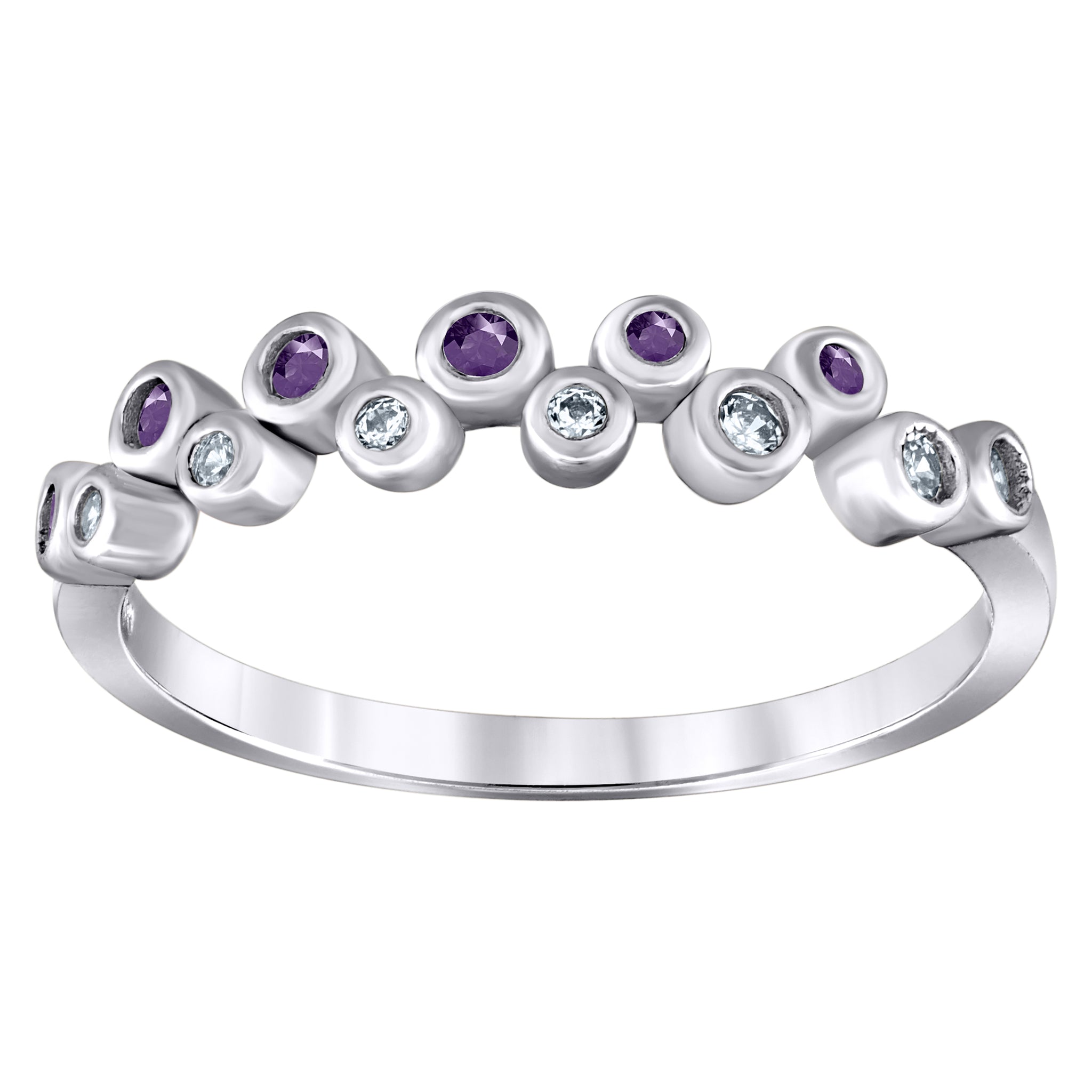 Keene Jewelers 925 Sterling Silver Womens Purple Cubic Zirconia Semi-Eternity Wedding Band Ring Size 6
