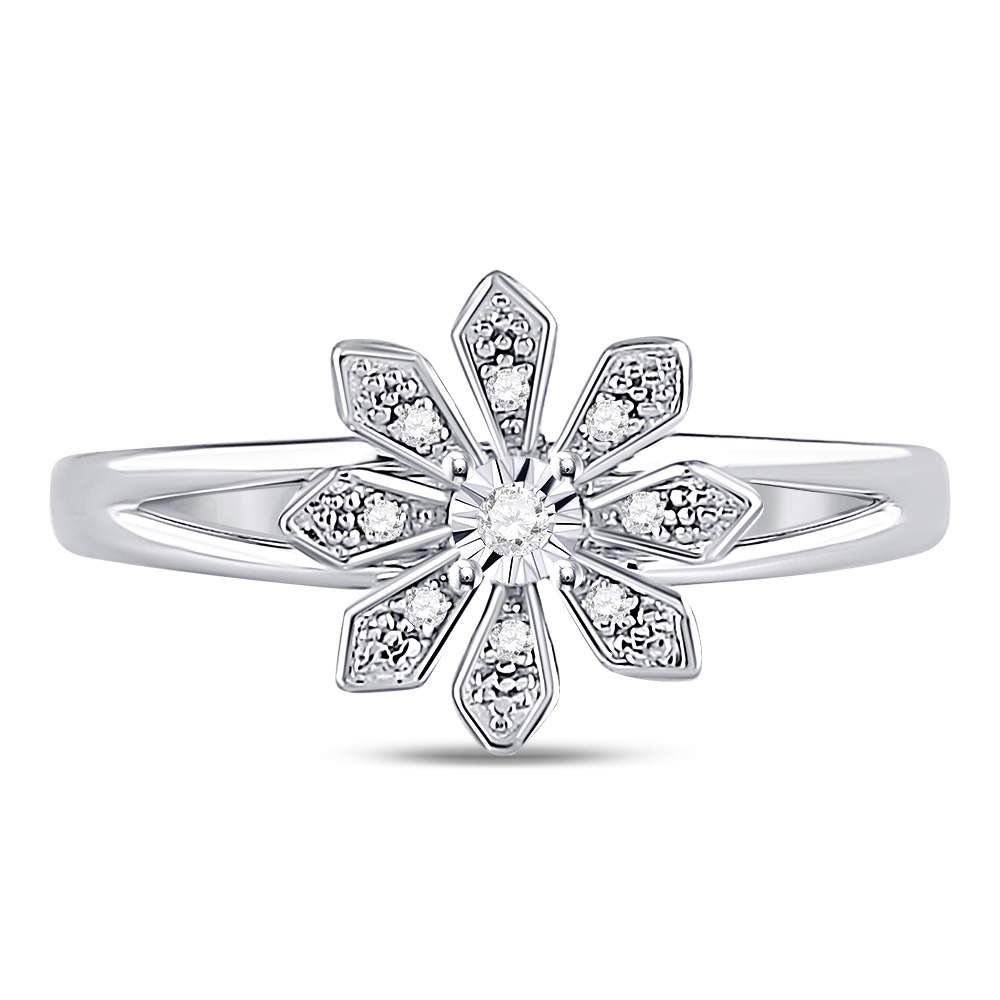 Keene Jewelers Sterling Silver Womens Round Diamond Flower Fashion Ring 1/20 Cttw